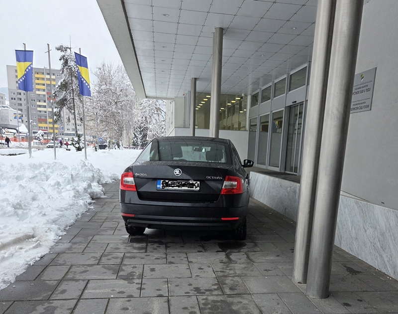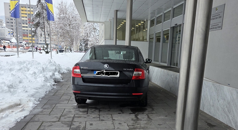 Naime, po tvrdnjama naših čitalaca, na fotografiji u prilogu je privatno vozilo v.d. predsjednice Općinskog suda u Tuzli Alvire Selimović koje je cijeli jučerašnji dan, odnosno radno vrijeme, bilo parkirano ispred samog pješačkog ulaza u Općinski sud Tuzla.
